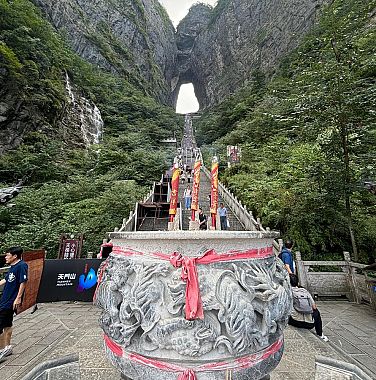 -  la seconda attrazione è Tianmenshan, un tempio buddista estremamente suggestivo collocato molto più in alto, sull'ampia cima tronca del monte, in mezzo a una vegetazione lussureggiante.