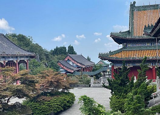 Il tempio buddista si trova sul lato nord. Fu fondato nell'ottavo secolo d.C. durante la dinastia Tang ed è stato distrutto e ricostruito a più riprese, l'ultima volta nel 1949. Ancora oggi è oggetto di laboriosi restauri. L'architettura e i colori degli edifici, le piante e i fiori, il silenzio: tutto contribuisce a conferire a Tianmenshan un'atmosfera surreale, fra la Terra e il cielo.