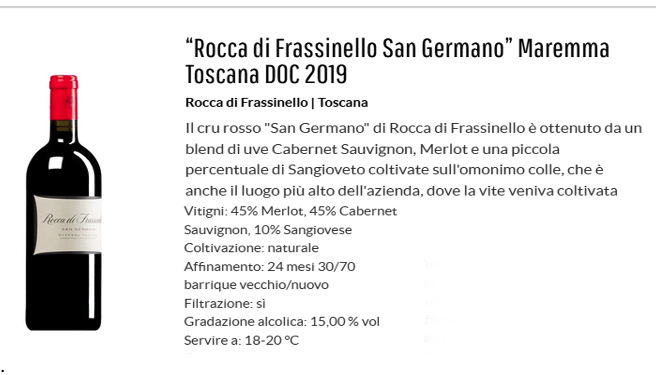 Il Cru signifiva che è un vino ottenuto da un vigneto situato in un dato luogo dell'Azienda stessa. Il mio esame organolettico è il seguente. Colore: rosso rubino intenso con riflessi aranciati. Olfatto: deciso, spiritoso, persistente di frutti neri maturi in cui prevalgono i lampone e il mirtillo.Gusto: caldo, avvolgente, sentori di liquirizia, persistente a coda di pavone.