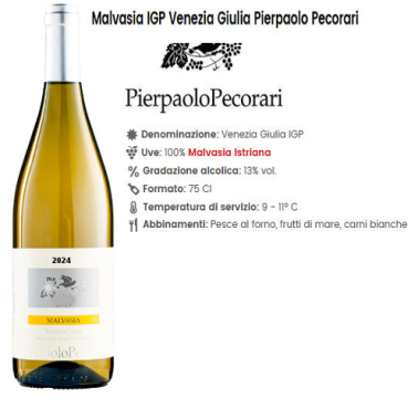 L'azienda che lo produce è di Pierpaolo Porcari di San Lorenzo Isonzino GO. Il vino è un IGT fatto con uva di Malvasia Istriana in purezza, del 2024.