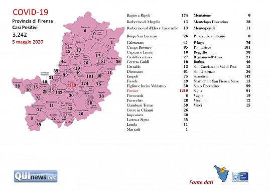 Nel dettaglio i 17 casi in provincia di Firenze