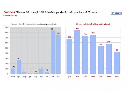 FIRENZE — La provincia di Firenze conferma con 420 nuovi casi la curva discendente che da 48 ore teneva i tamponi positivi sulla soglia dei 500 casi giornalieri.