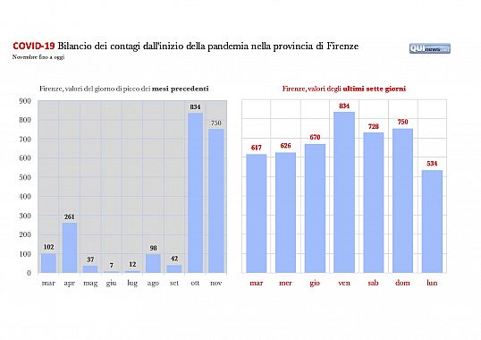 FIRENZE — Il Covid-19 continua la sua marcia in Toscana e in provincia di Firenze, nell'arco di 24 ore, sono 534 le persone risultate positive, con una scia di decessi che si allunga ancora: sono 13 in più i morti registrati da ieri che portano il totale dei decessi nel Fiorentino a 501.