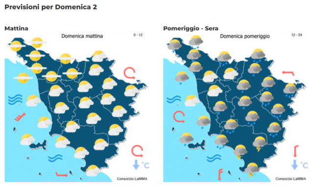 TOSCANA — Meteo in peggioramento verso il fine settimana, specialmente nella domenica delle Palme quando le piogge saranno estese fra l'area appenninica quelle centrale e meridionale della Toscana, con vento e nuvole a ingrigire il cielo.